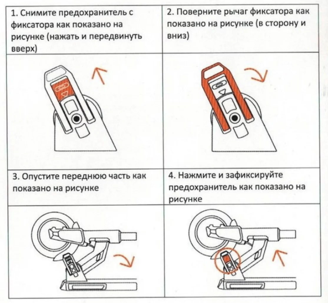 1. Для сброса скорости и полной остановки используйте рычаг тормоза, не нажимайте на рычаг резко это может привести к опрокидыванию. Рычаг контролирует тормозной диск переднего колеса. Для экстремального торможения надавите ногой на заднее крыло электросамоката.