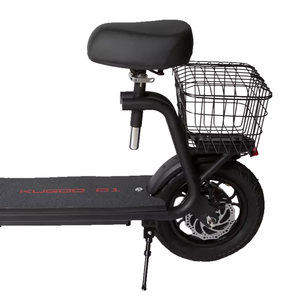 • Багажная корзина также съёмная. Зачастую при езде на электросамокате нужно взять с собой какие-то вещи, и спасал только рюкзак. На Куго С1 можно освободить себя от багажа и сложить его в багажник.